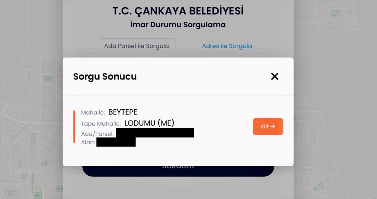 1-İmar durumunu öğrenmek istediğiniz yerde yetkili belediyenin imar durumu sorgulama sayfasına girin. Bunun için Google arama kısmına belediyenin adı ve imar durumu sorgulama yazarak ilgili sayfayı bulabilirsiniz. (Örnek: Çankaya Belediyesi İmar Durumu Sorgulama)